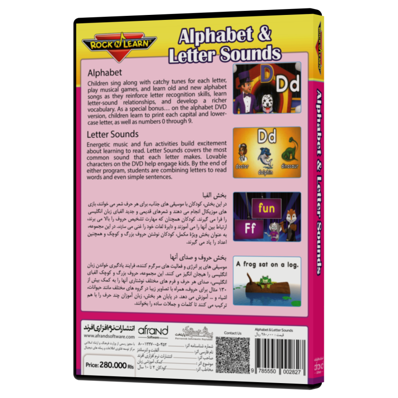 آموزش حروف بزرگ و کوچک الفبای انگلیسی، صدای هر حرف و فرم های مختلف نوشتاری آنها ارائة بیش از 130 مثال برای حروف همراه با تصویر در گروه های مختلف مانند: حیوانات، اشیاء و ... آموزش نوشتن حروف و اعداد آموزش همراه بازی با حروف و کلمات