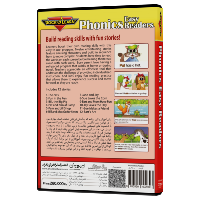 زبان آموزان با این برنامه که به آسانی نیز قابل استفاده است، مهارت خود را در خواندن زبان انگلیسی بالا می برند. 12 داستان سرگرم کننده، همراه با شخصیت های انیمیشنی جذاب، به ترتیب مطالب را از ساده به پیچیده آموزش می دهند.