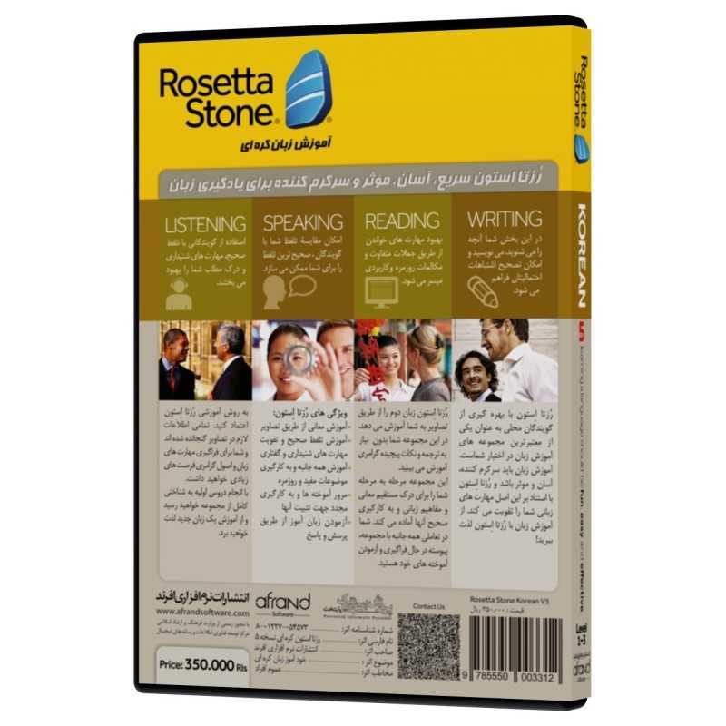 ما زبان را به همان شیوه ای که زبان مادری خود را آموخته اید، یعنی به صورت ذاتی و بطور مستقیم و بدون ترجمه کردن، به شما می آموزیم. بدین معنا که دیگر با توضیحات گرامری پیچیده و لیستی از کلمات خسته کننده برای به خاطر سپردن، رو به رو نیستید. رُزتا اِستون نرم افزاری کاملاً تعاملی است که از گویندگان محلی و تصاویر واقعی بهره می گیرد و شما به کمک آن می توانید تمامی مهارت های Listening, Speaking, Reading, Writing, Grammar, Vocabulary, Pronunciation خود را بهبود بخشید؛ تلفظ خود را بررسی کرده و در صورت نیاز آن را اصلاح نمایید؛ دایرة لغات خود را گسترش دهید و در مکالمات کاربردی به طور فعال شرکت کنید. استفاده از صوت و تصویر، معنای اصلی کلمات را حفظ می نماید؛ چرا که هرگز نمی توان به طور دقیق کلمات یک زبان را به زبان دیگر ترجمه نمود. تمامی اطلاعات لازم، در تصاویر گنجانده شده اند و شما برای فراگیری مهارت های زبان و اصول گرامری، روش های متفاوت و جذابی را تجربه خواهید کرد. در طول آموزش با این نرم افزار، شما با تکرار و تمرین و به کارگیری عبارات مختلف، می آموزید که بدون اشتباه صحبت کنید. این نرم افزار با ارائة بازخورد سریع، به شما این امکان را می دهد که اشتباهات احتمالیتان را تصحیح نمایید.