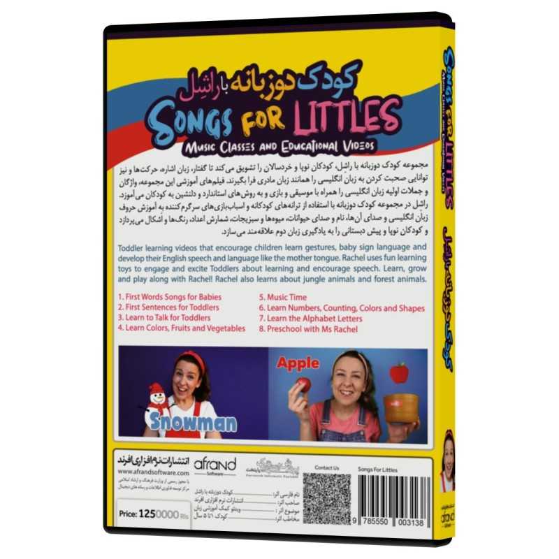 مجموعه کودک دو زبانه با راشِل، کودکان نوپا و خردسالان را تشویق میکند تا گفتار، زبان اشاره، حرکت ها و نیز توانایی صحبت کردن به زبان انگلیسی را همانند زبان مادری فرا بگیرند. فیلم های آموزشی این مجموعه، واژگان و جملات اولیه زبان انگلیسی را همراه با موسیقی و بازی و با روش های استاندارد و دلنشین به کودکان می آموزد. راشِل در مجموعه کودک دو زبانه با استفاده از ترانه های کودکانه و اسباب بازی های سرگرم کننده به آموزش حروف انگلیسی و صدای آنها، نام و صدای حیوانات، میوه ها و سبزیجات، شمارش اعداد و رنگها می پردازد و کودکان نوپا و پیش دبستانی را به یادگیری زبان دوم علاقه مند می سازد.